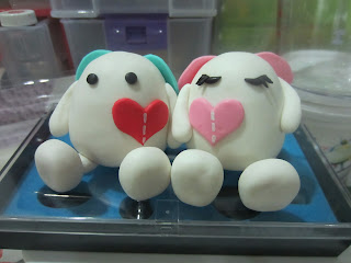 Finally I added on some fondant hearts on some wire and stuck it behind the figurines as a finishing touch. There you have it.. a Cupipi and Cupido birthday cake. I hope you get poked by Cupid's arrow after reading about this one! Love..Love Love..